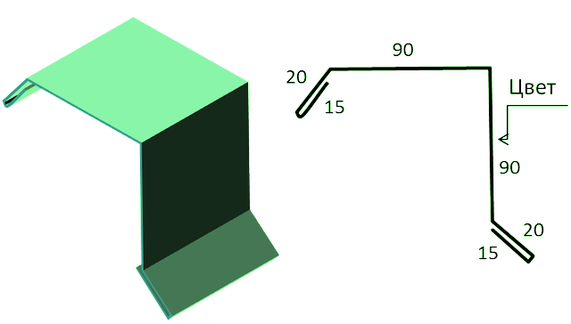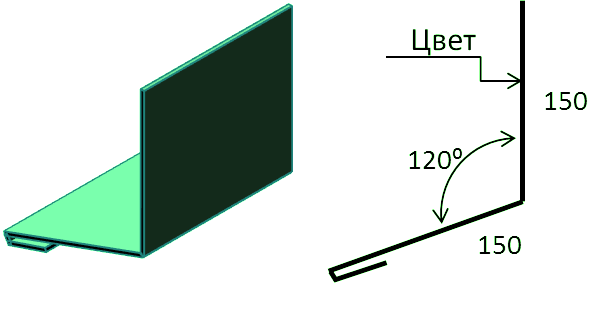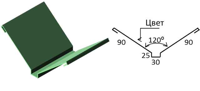 - Накладка ендовы (планка стыка) придаёт аккуратный внешний вид и закрывает металлические края покрытия во внутренних углах кровли.