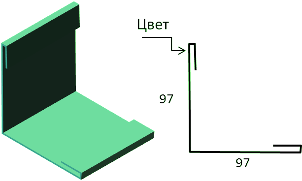 - Планка внешнего угла – удерживает покрытие, повышает герметичность и защищает края листов от ветра и влаги. Используется также как декоративный элемент.
