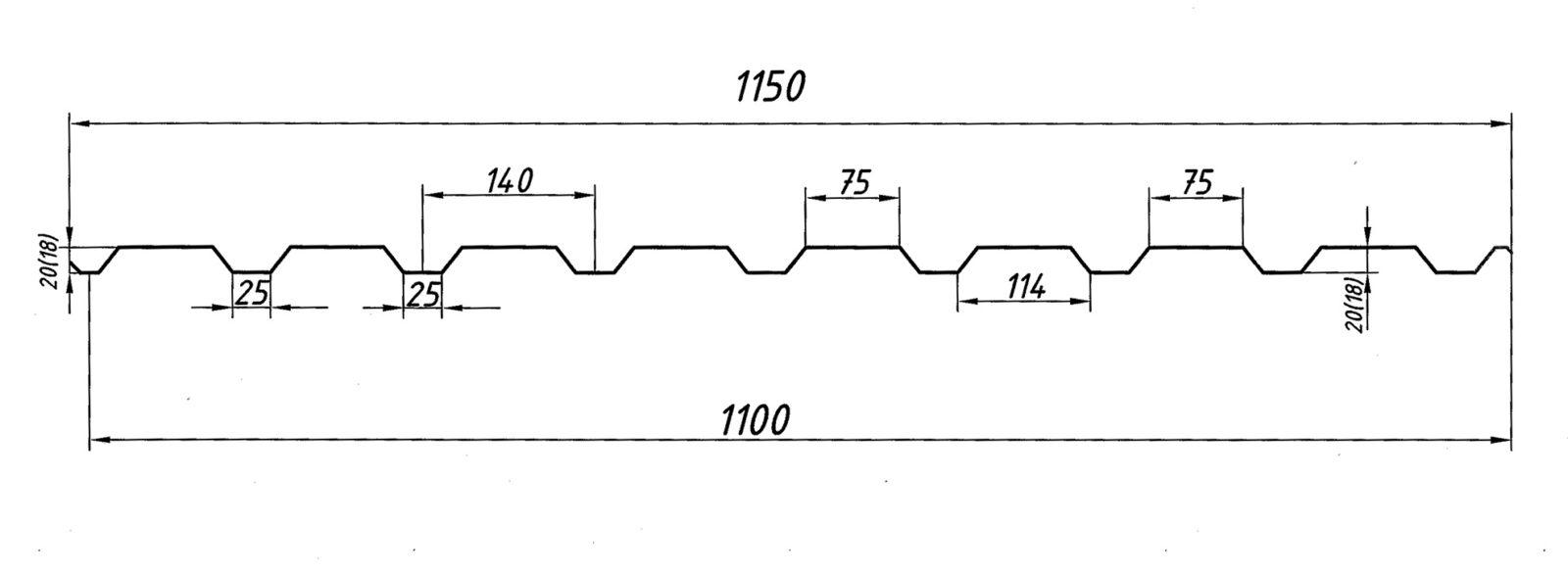 Профиль: Профиль ПК20 имеет трапециевидную форму, что обеспечивает не только эстетичный внешний вид, но и дополнительную прочность конструкции.
