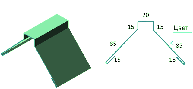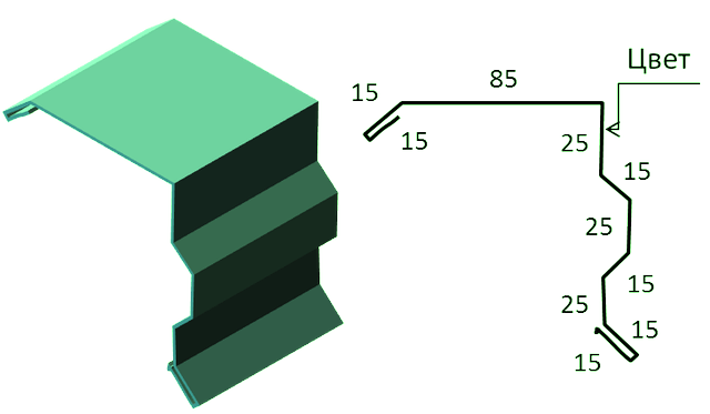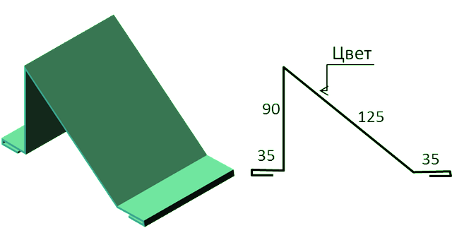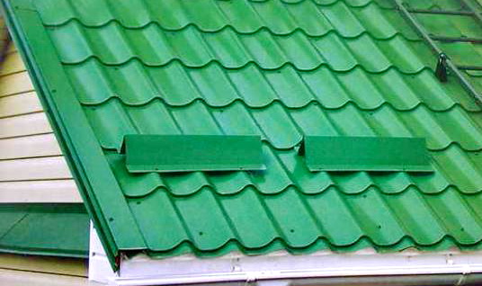 Закрывает по торцам листы профнастила или металлочерепицы от ветра, снега или дождя, при этом выполняя также декоративную функцию. Кровля с торцевыми планками выглядит завершённой и аккуратной.