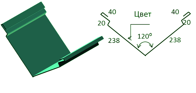 Как и планки стыка, ендова бывает внутренней и внешней. Соответственно внутренняя монтируется под профнастил или металлочерепицу, внешняя – сверху кровельного покрытия. Внешняя ендова также выполняет декоративную функцию, придавая новой кровле ухоженный и завершённый вид.