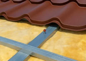 Спецификации этой металлочерепицы включают в себя толщину металла 0,45 мм, что обеспечивает оптимальное соотношение прочности и веса, делая материал достаточно легким для монтажа без потери прочности и способности выдерживать.
