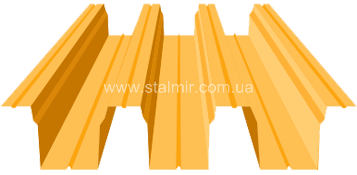 Металлопрофиль с высоким ребром и повышенной жесткостью применяется на кровлях с пролетом более 4,5 метра, используется как межэтажное перекрытие под заливку бетона, а также как несъемная опалубка. Для производства несущего профиля используется металл толщиной от 0,7 мм до 1,20 мм. Маркируется буквой "Н" - несущий. Самые популярные виды несущего профлиста - марки Н60, Н75, Н75, Н114, Н124, Н135. Цена на такой металлопрофиль будет выше, чем на стеновой.