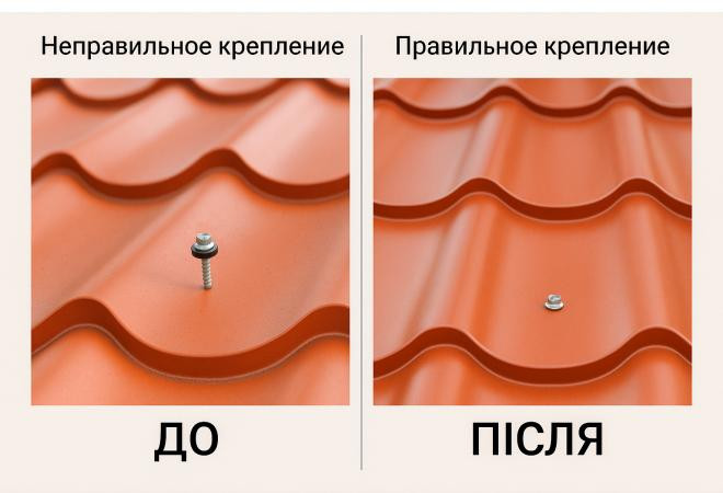 • Не допускається кріплення у верхню хвилю — це призводить до деформації листа і ризику протікання.
