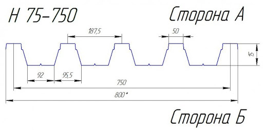 Н75 виготовляється із товщини металу від 0,5 до 1,2 мм. Використовується у будівництві як опалубка, для перекриттів горизонтальних та вертикальних площин. Профлист Н75 екологічно чистий матеріал виготовляється з оцинкованого рулону або сталі з полімерним покриттям шляхом холодного прокату на профільованому сучасному автоматичному обладнанні. Чудово зарекомендував себе на дахах великих об'єктів. Завдяки невеликій ширині листа та додатковим ребрам жорсткості дозволяє збільшити відстань між решетуванням до 4 метрів, що економить на всій конструкції загалом. Також успішно застосовується для монтажу стін при будівництві каркасних споруд конструкцій, що легко зводяться. Профнастил Н75, що несе, здатний витримувати величезні навантаження навіть у горизонтальній площині, що дозволило цьому матеріалу стати незамінним і найпопулярнішим серед посилених профілів.