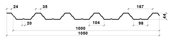 - Общая ширина листа: 1050 мм